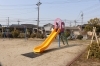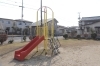 限られたスペースながら、二種類の滑り台とブランコ・はん登棒があり、遊具も充実しています。公園を囲むようにきれいに剪定された低木が植えられていて、風通しや見通しがよく、子供たちが安心して遊べる場所です。